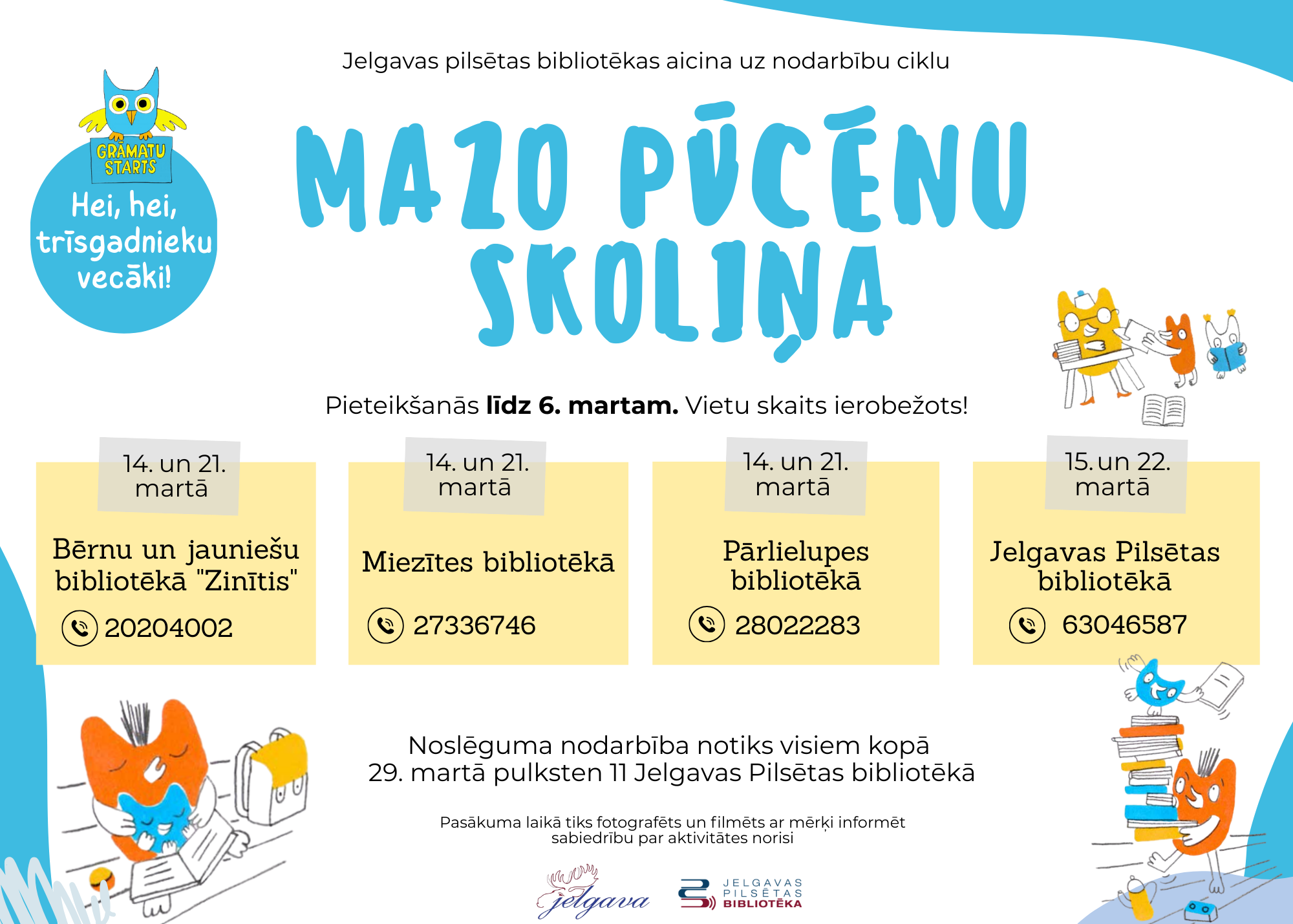 Jelgavas Pilsētas bibliotēka un tās filiālbibliotēkas – Miezītes bibliotēka, Pārlielupes bibliotēka un bērnu un jauniešu bibliotēka “Zinītis” – aicina trīsgadniekus un viņu vecākus līdz 6. martam pieteikties nodarbību ciklam “Mazo pūcēnu skoliņa”, kas iekļauts lasīšanas veicināšanas programmā “Grāmatu starts”..png)