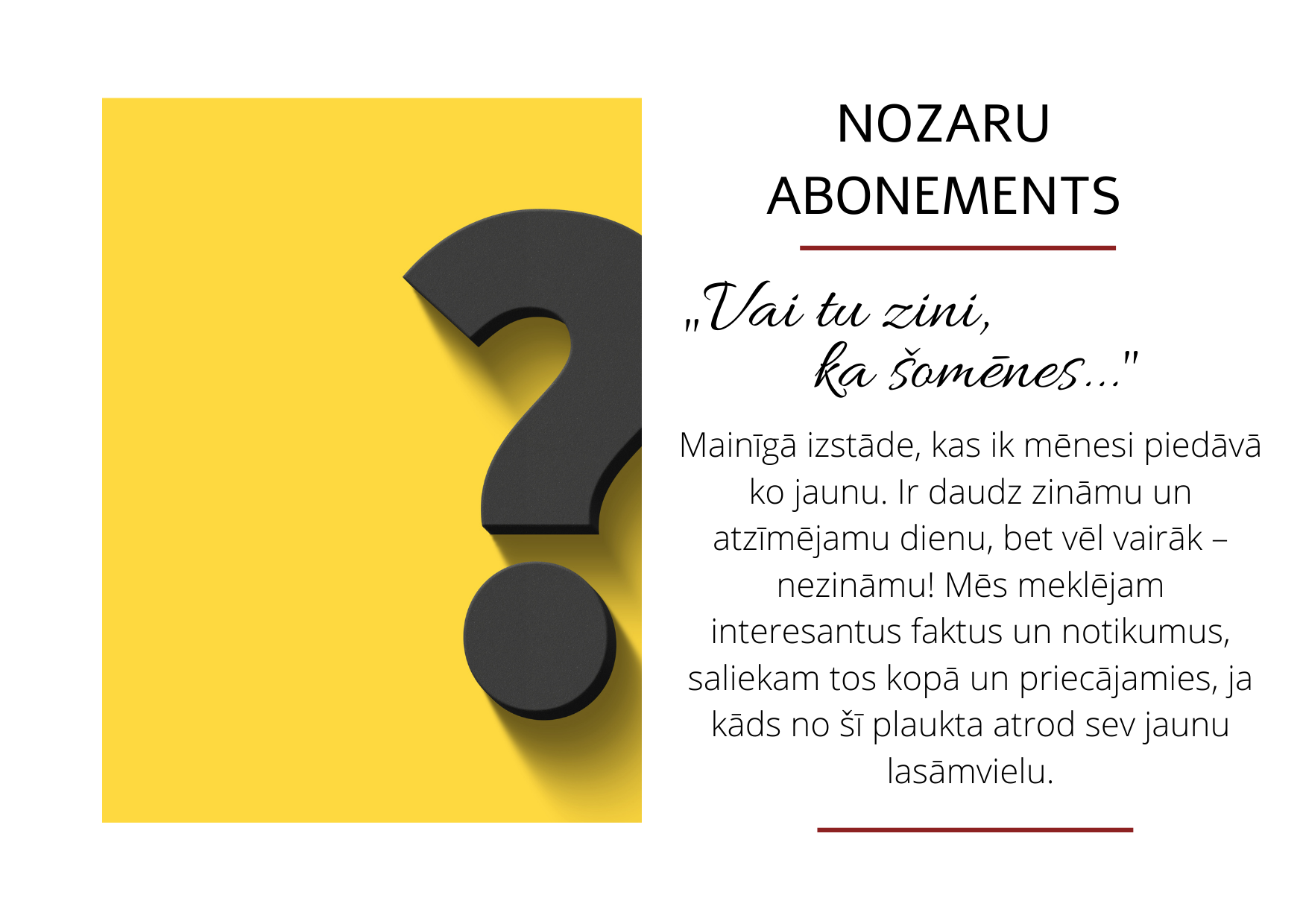 Martā grāmatu izstādēs uzzini iedvesmojošus stāstus par veiksmīgām sievietēm, iepazīsti attiecību noslēpumus un dodies ceļojumā literatūras vēsturē. Un kā allaž – pārsteigumi gaidāmi izstādē “Vai tu zini, ka šomēnes...”