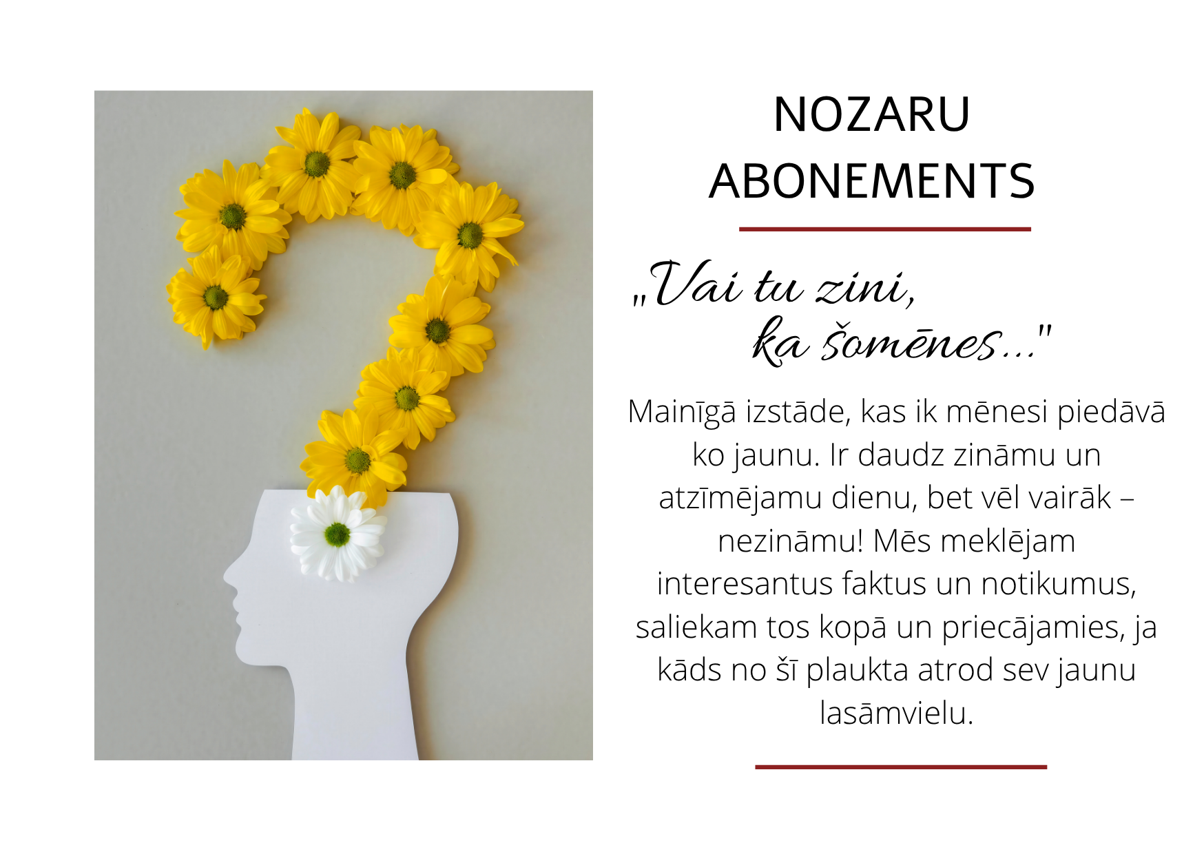 Un kā allaž – pārsteigumi gaidāmi izstādē “Vai tu zini, ka šomēnes...”, kur fakti, notikumi un nejauši atklājumi kļūst par sākumu jaunam lasīšanas piedzīvojumam.
