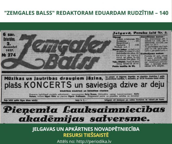 "Zemgales Balss" redaktoram Eduardam Rudzītim – 140