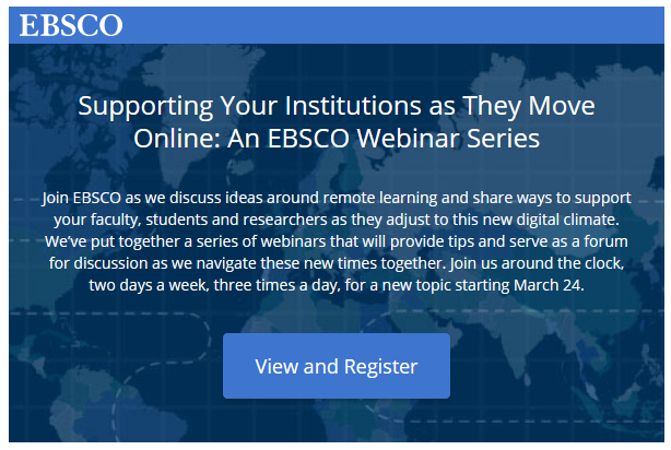 Sakarā ar pasaulē daudzviet noteikto ārkārtas situāciju, EBSCO piedāvā tiešsaistes vebināru sēriju.