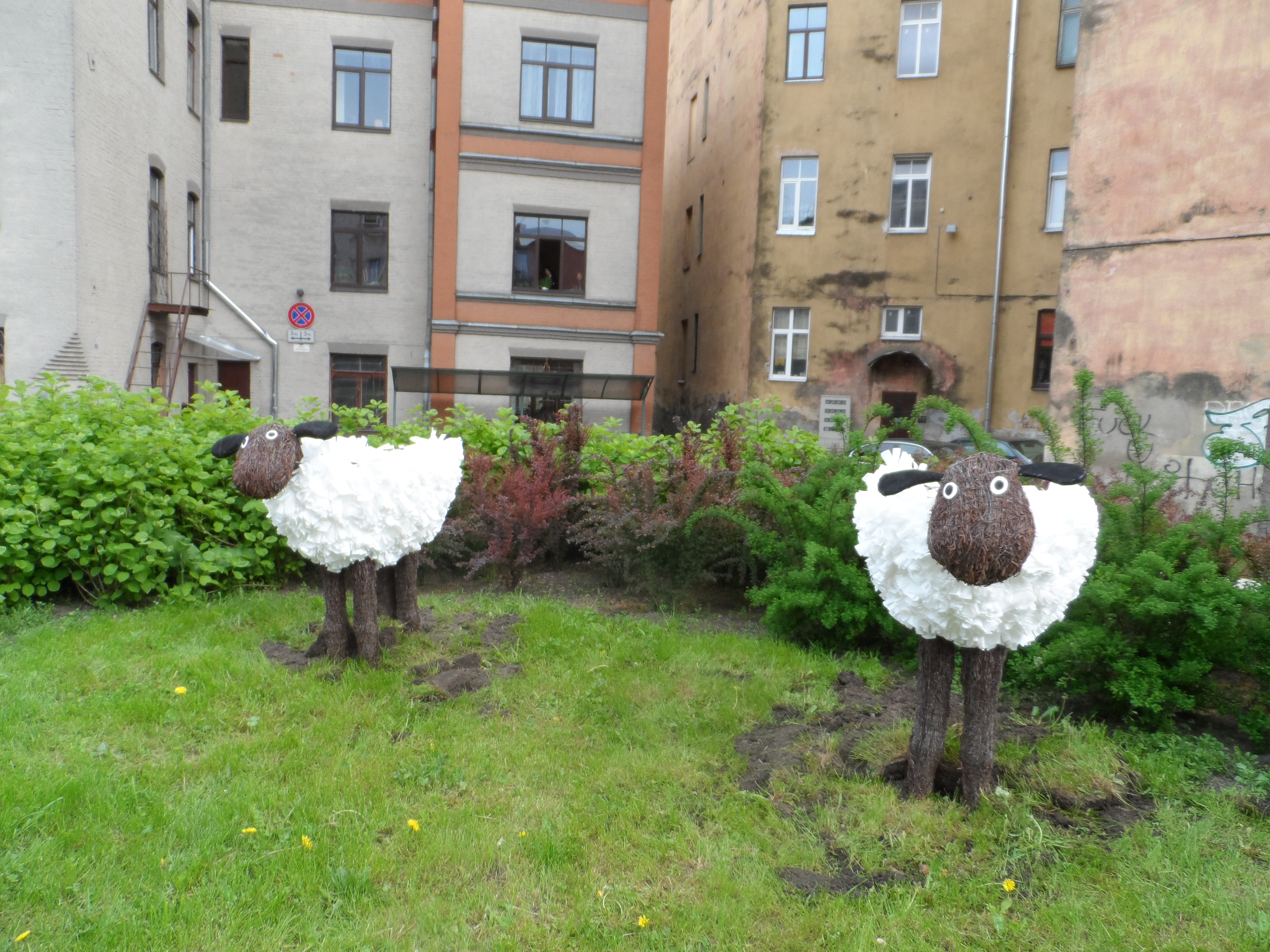 Paveroties pa logu, bibliotēkas darbinieku sejās uzplaukst smaids, jo uz pagalmu atnākušas divas baltas aitiņas. Aita simbolizē mīlestību, baltā krāsa simbolizē gaismu, sauli un pārdzimšanu. Visnotaļ patīkams pārsteigums gan bibliotēkas darbiniekiem, gan apmeklētājiem! :)
