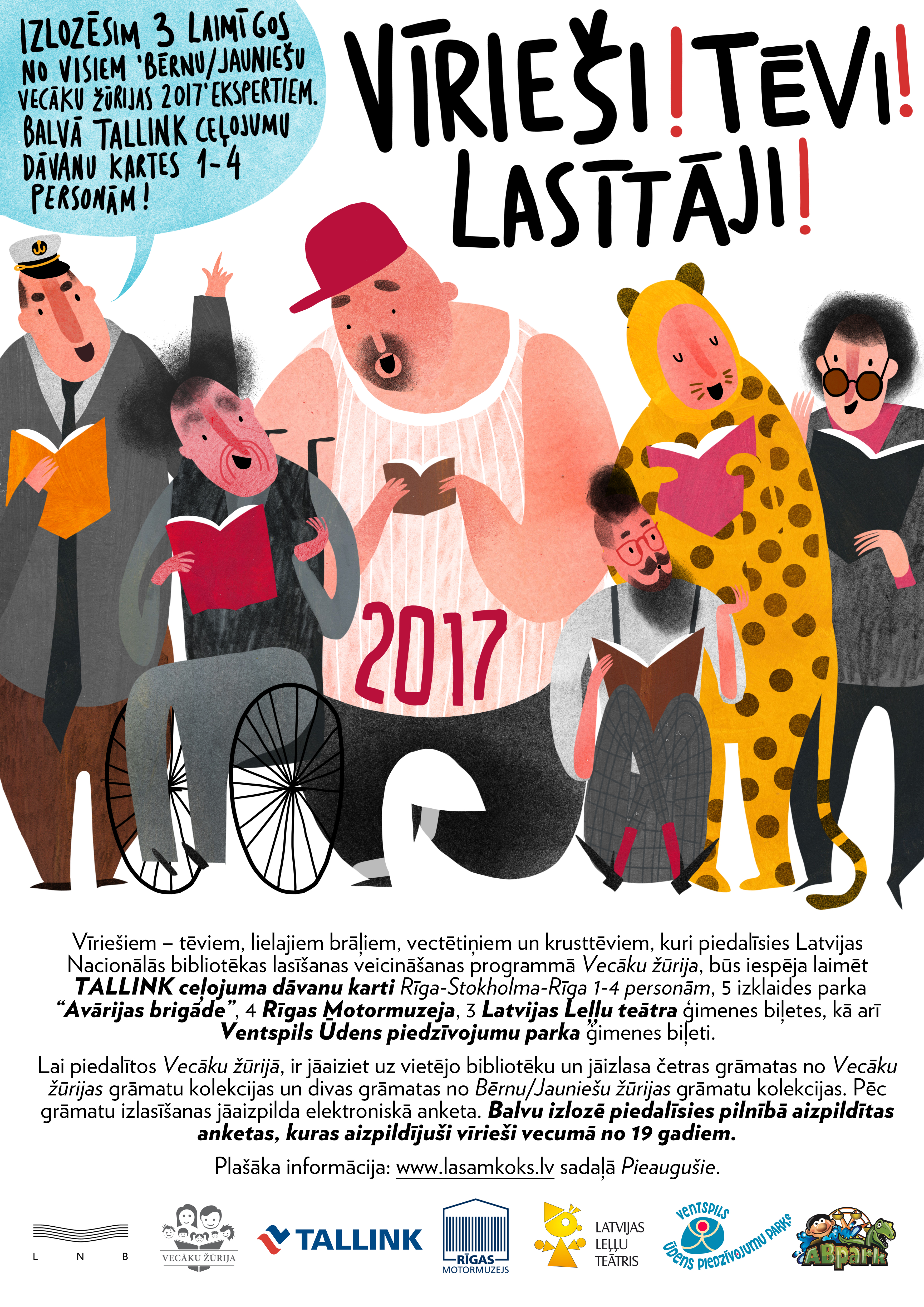 Akcijas mērķis ir veicināt lasīšanu vīriešu – tēvu, lielo brāļu un vectētiņu vidū, kopā ar bērniem piedaloties lasīšanas vecināšanas programmā „Bērnu, jauniešu un vecāku žūrija”.Kāpēc uzsākta šāda akcija? Vienmēr problemātisks ir vīriešu klātbūtnes jautājums lasīšanā, zēniem pietrūkst pozitīva piemēra. Lasīšanas veicināšanas programmas sadaļa vecākiem „Vecāku žūrija” tika izveidota 2012. gadā, togad piedalījās tikai 15 vīrieši. Reaģējot uz šo zemo rādītāju, 2013. gadā tika uzsākta īpaša akcija Vīriešiem – tēviem, vectētiņiem, lielajiem brāļiem un krusttēviem ar mērķi ieinteresēt vīriešus piedalīties lasīšanā kopā ar bērniem. Vīrieši, kuri ir izlasījuši Vecāku žūrijas kolekcijas grāmatas un iepazinušies ar piedāvātajām bērnu grāmatām, aizpildījuši elektronisko novērtējuma anketu, piedalās loterijā un sacenšas veiksmē par mūsu sadarbības partneru sarūpētajām dāvanām sev un savām ģimenēm.