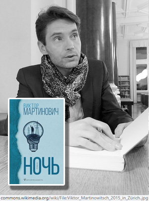 Viktors Martinovičs (baltkr. Виктор Мартинович) Viktors Martinovičs ir mūsdienu baltkrievu rakstnieks, mākslas zinātnieks. Romāns “Nakts” sarakstīts baltkrievu valodā, krievu valodā tulkojis pats autors. Romāns “Nakts” ir antiutopija un romāns–spēle, kurā pārklājas valodu un kultūru nozīmes, grāmata–rēbuss, kas patiks literatūras un kultūras gardēžiem. Zīmīgi, ka romāns iznāca 2019. gadā, tikai gadu pirms apspēlētie notikumi sasaucas ar šodienas situāciju pasaulē – daļēja izolācija pandēmijas dēļ, cenšanās mācīties dzīvot jaunos apstākļos. Tikai gadu pirms dramatiskajiem notikumiem Baltkrievijā pēc prezidenta vēlēšanām (cīņa ar propagandu, ar vardarbīgu režīmu un viltus ziņām) – tas viss mākslinieciski virtuozi apspēlēts romānā. Romāns “Nakts” sākās kādā drūmā dienā, kurā visa pasaule negaidīti iegrimst mūžīgā, aukstā tumsā. Baltkrievijas galvaspilsēta Minska pārvēršas neskaitāmu izolētu pašpasludinātu republiku džungļos, kuros valda savi likumi un ideoloģija. Grāmatas galvenajam varonim Grāmatniekam vienīgajam visā pilsētā pieder neliela, privāta bibliotēka un suns. Grāmatnieks dodas bīstamā ceļojumā, lai atrastu savu mīļoto, kura brīdī, kad pasaulē izdziest gaisma, atrodas Nepālā.