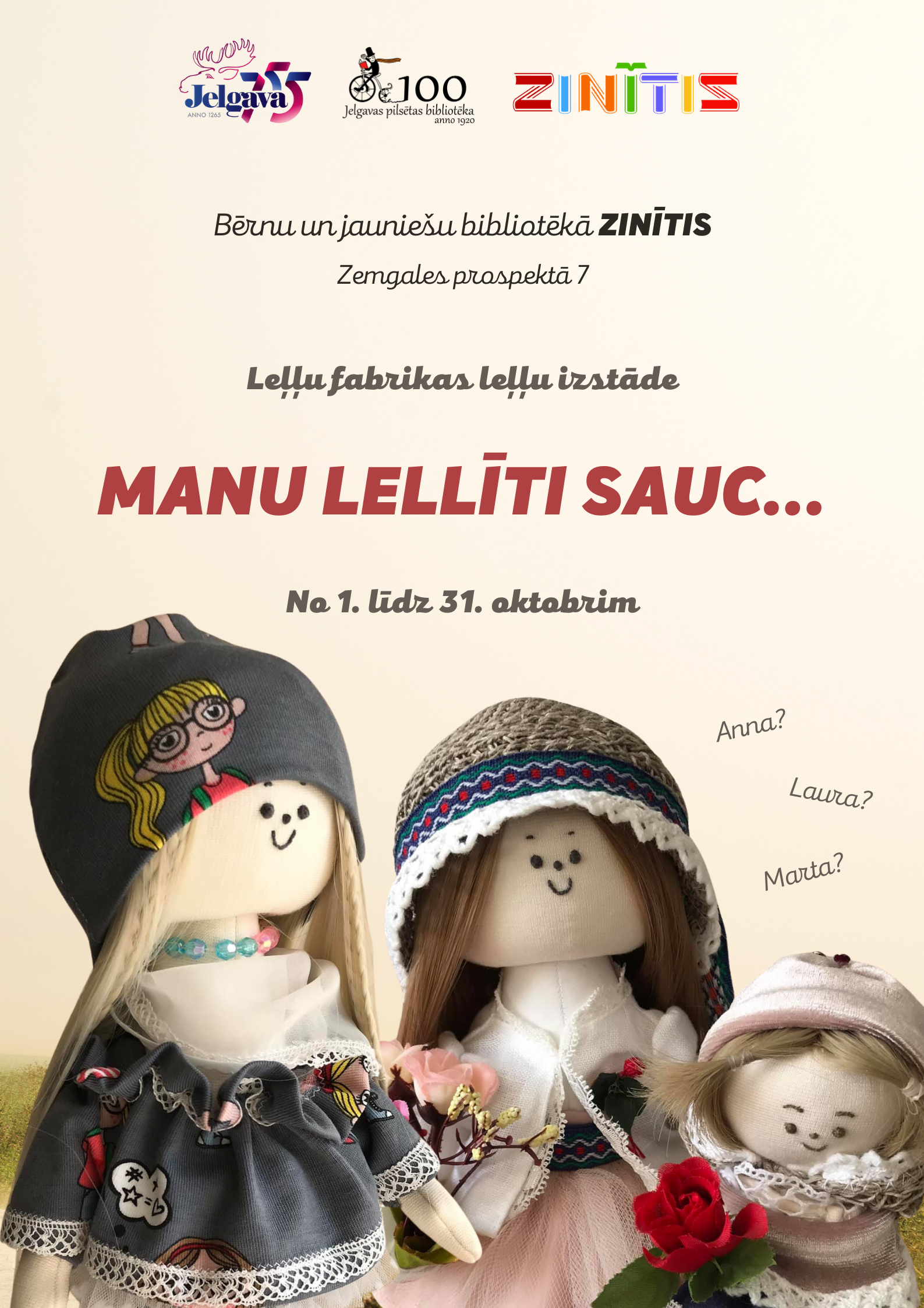 Visu oktobra mēnesi bērnu un jauniešu bibliotēkā “Zinītis” būs aplūkojama Leļļu fabrikas leļļu izstāde “Manu lellīti sauc…”Leļļu autore Sarmīte Jurševska stāsta, ka ceļu pie šīm lellītēm pavērusi viņas meita Kristīne, kura pamanījusi internetā pašdarinātas auduma lellītes un vēlējusies, lai arī mamma radītu ko tādu.