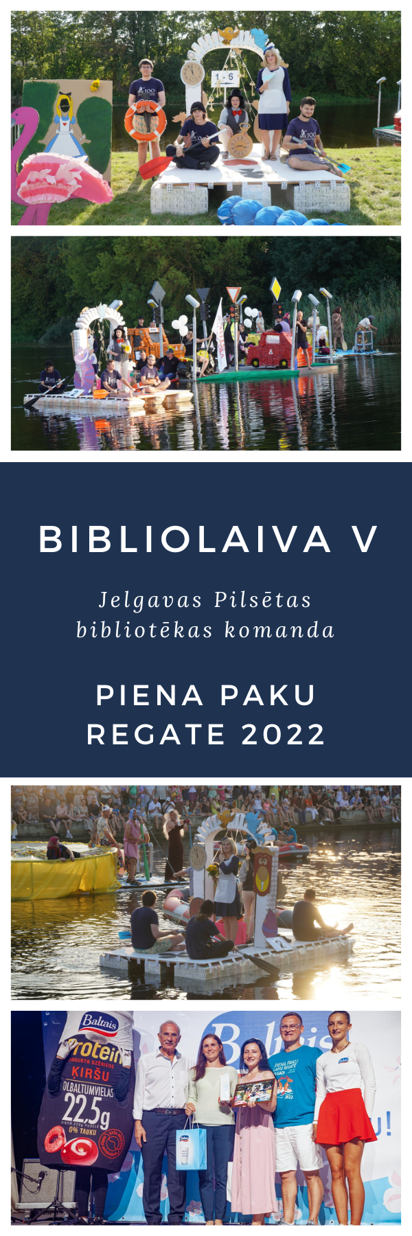 Jau piekto gadu Jelgavas Pilsētas bibliotēkas komanda ar Bibliolaivu startē Piena paku regatē. Bibliotēkas plosta vienotais motīvs bija stāsts “Alise Brīnumzemē”.