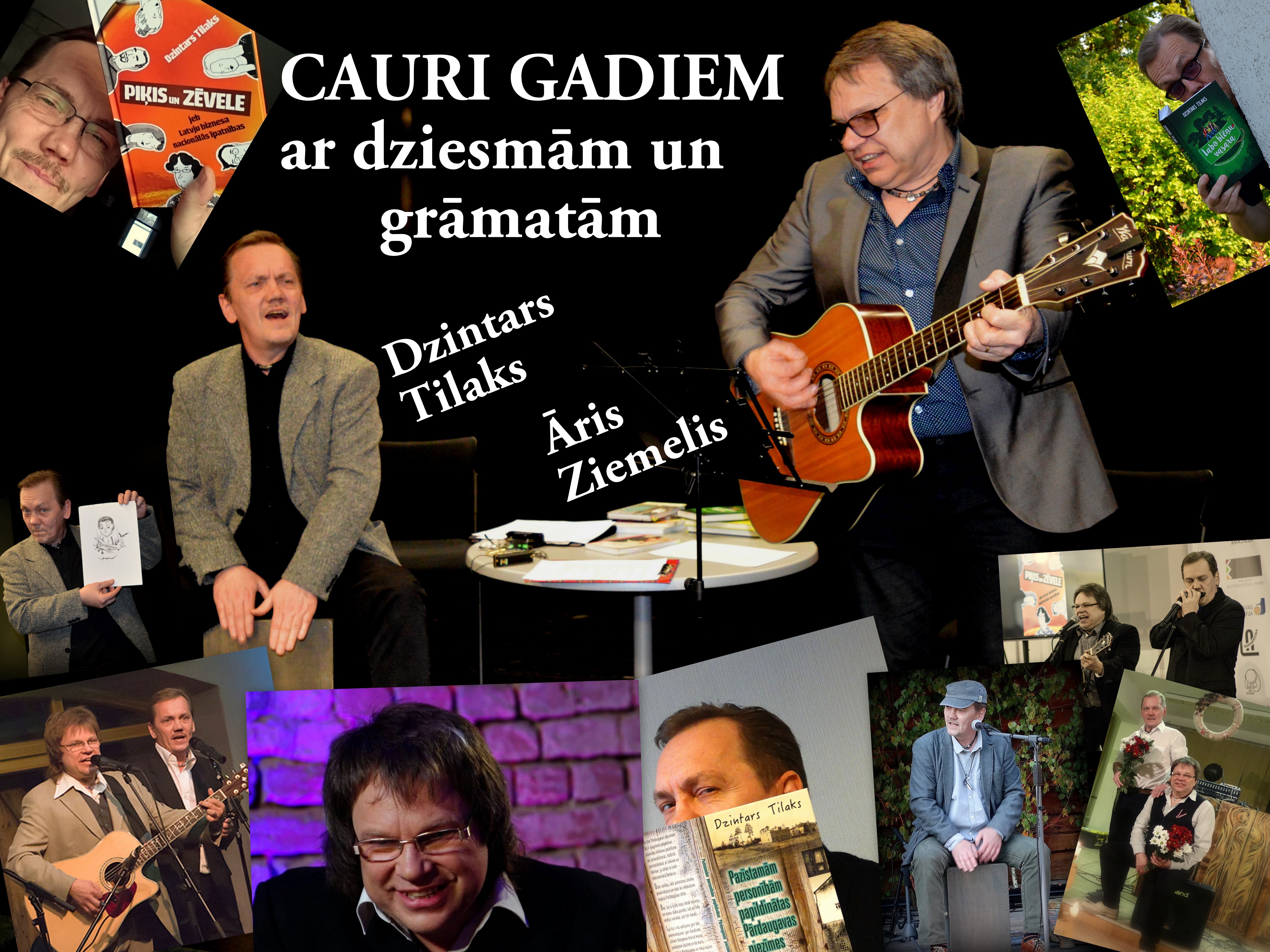 Pirmais cikla pasākums būs ne tikai literārs, bet arī muzikāls, jo tajā tiksies divi draugi – Dzintars Tilaks – radiobalss un 14 grāmatu autors un Āris Ziemelis – komponists un dziesminieks, aptuveni 120 dziesmu autors.Dzintars Tilaks ir pazīstams Latvijas Radio žurnālists un vairāku lielisku grāmatu autors. Viņš raksta gan pieaugušajiem, gan bērniem. Līdz šim iznākušas 12 viņa grāmatas, tajā skaitā „Latviskās sirdslietas”, „Piķis un zēvele”, „Pazīstamām personībām papildinātas Pārdaugavas piezīmes”, „Oki doki! jeb Kad mēs augām”, „Čomiņš”, „Labo blēņu vasara”.