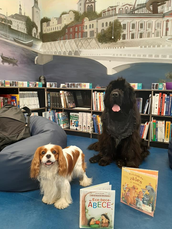 Bibliotēkā bērni grāmatas lasa arī kopā ar suņiem