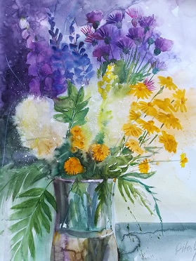 Bibliotēkā uzplaukst krāsas autoru kolektīva mākslas izstādē “Ziedi”
