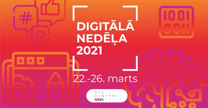 Lai uzsvērtu, cik svarīgas ikvienam Latvijas iedzīvotājam ir digitālās prasmes, rosinātu tās pilnveidot un aicinātu izmantot digitālās tehnoloģijas un pakalpojumus gan darbā, gan ikdienā, no 22. līdz 26. martam norisināsies ikgadējā “Digitālā nedēļa 2021”, kura šogad tiek rīkota tiešsaistē.