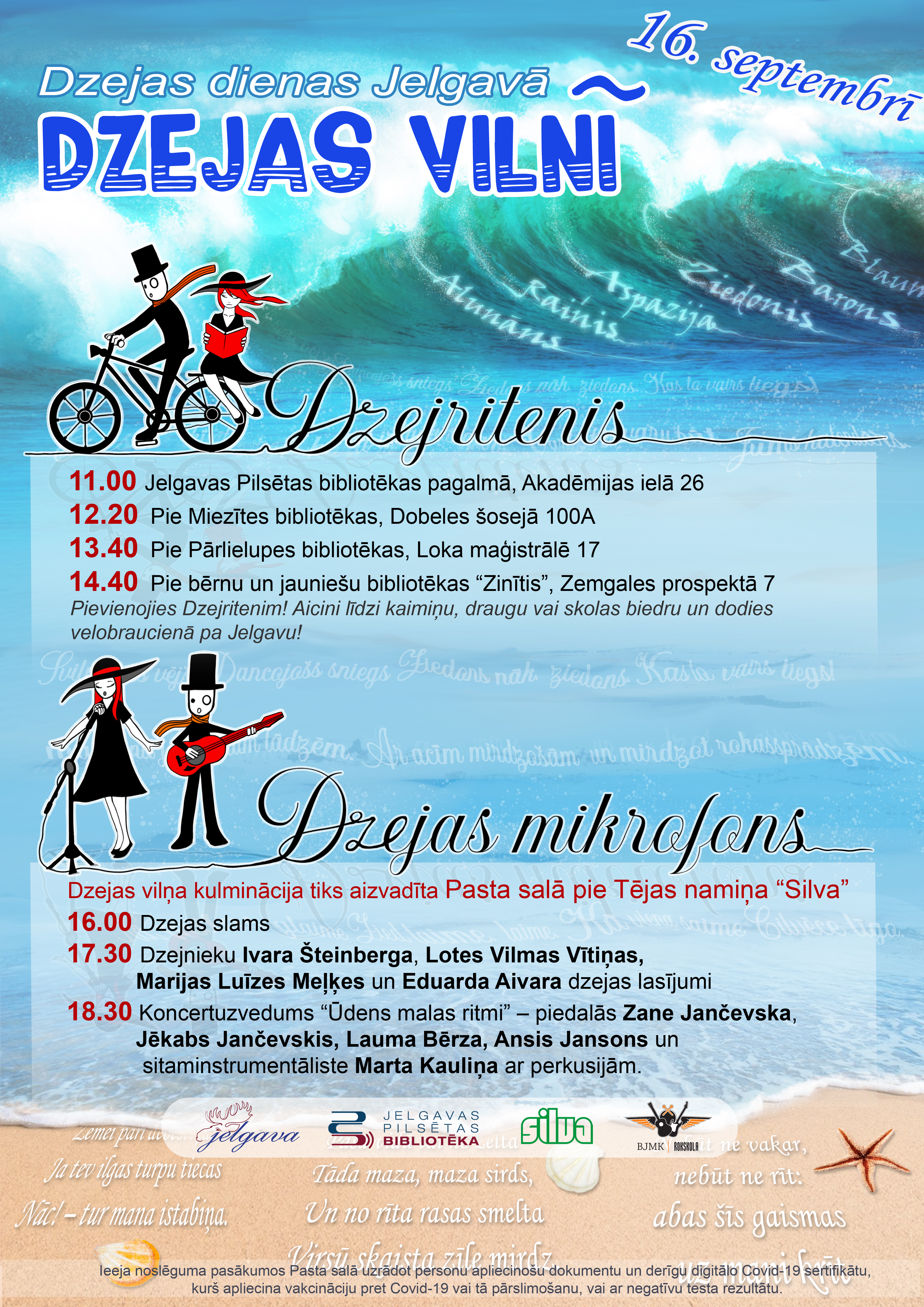 Jau tradicionāli septembrī, kad gaisā viegli jūtama rudens elpa un dabā krāsojās lapu zelts, ar plašu un vērienīgu programmu Jelgavas bibliotēka aicina uz Dzejas dienām. Šogad Dzejas dienas ienāks pilsētā ar vadmotīvu “Dzejas vilnī” un norisināsies 16. septembrī.Jau sesto gadu Dzejas dienas ieskandinās "Dzejritenis” – kopīgs velobrauciens, veicot pieturas pie četrām pilsētas bibliotēkām, lai vērotu radošus priekšnesumus un klausītos dzejas lasījumos.