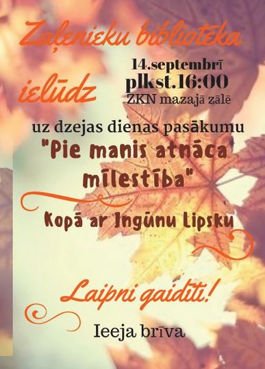 Jelgavas novada bibliotēkas aicina piedalīties Dzejas dienu pasākumos. Laipni aicināts ikviens interesents! Vairāk informācijas bibliotēku veidotajās afišās, kuras var aplūkot ŠEIT.