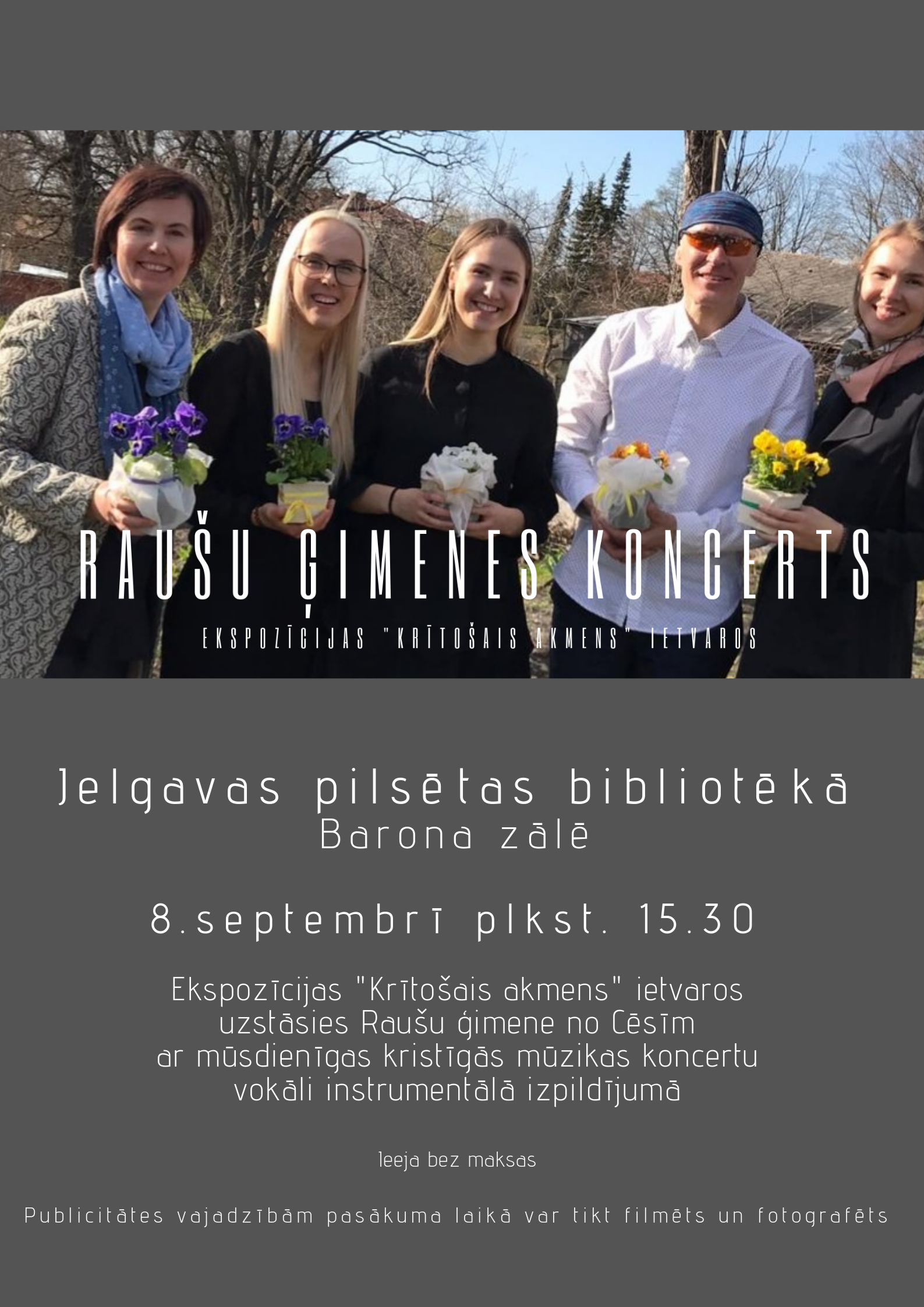 Uzstāsies Raušu ģimene no Cēsīm, kas iepriecinās ekspozīcijas apmeklētājus ar mūsdienīgu kristīgo mūziku vokāli instrumentālā izpildījumā.