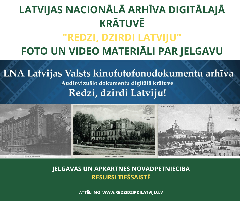 Nu jau apritējuši vairāk nekā četri gadi, kopš Latvijas Nacionālā arhīva struktūrvienība Latvijas Valsts kinofotofonodokumentu arhīvs piedāvā tīmekļvietni www.redzidzirdilatviju.lv. Šo gadu laikā ir audzis ne tikai pieejamās informācijas klāsts, kas sākumā bija tikai arhīva glabātās kinohronikas un dokumentālie filmējumi, bet arī uzlabotas informācijas meklēšanas funkcijas.Ikviens interesents var meklēt, lasīt, skatīties un klausīties arhīva uzkrātos skaņas, video, foto dokumentus par Latviju no 19. gadsimta 50. gadiem līdz mūsdienām. Ērtākai dokumentu atlasei izveidota tematiskā meklēšana, lai katrs atrastu sev interesējošo laiku, vietu, notikumu, personu gandrīz 70 tūkst. vēstures liecībās. Šajā krājumā vairāk nekā 1000 foto un videoierakstu ir arī par Jelgavu un tās apkārtni!
