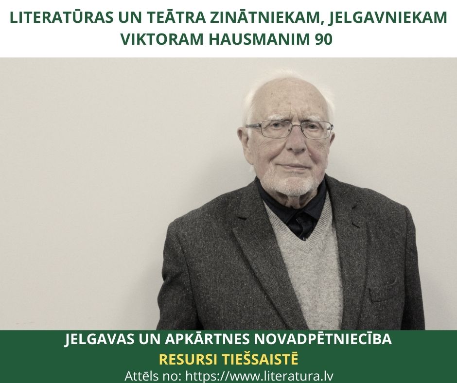 Literatūras un teātra zinātniekam, jelgavniekam Viktoram Hausmanim 90. Viktors Hausmanis ir habilitētais filoloģijas doktors (1992), Latvijas Zinātņu akadēmijas akadēmiķis un īstenais loceklis (1989), Valsts emeritētais zinātnieks (2017). Redzot šos titulus, pārņem pastīva bijība, bet Hausmaņa kunga intervijas un stāsti par teātri un literatūru ir tik kārdinoši, tie ievelk, klausoties un lasot pazūd laiks.