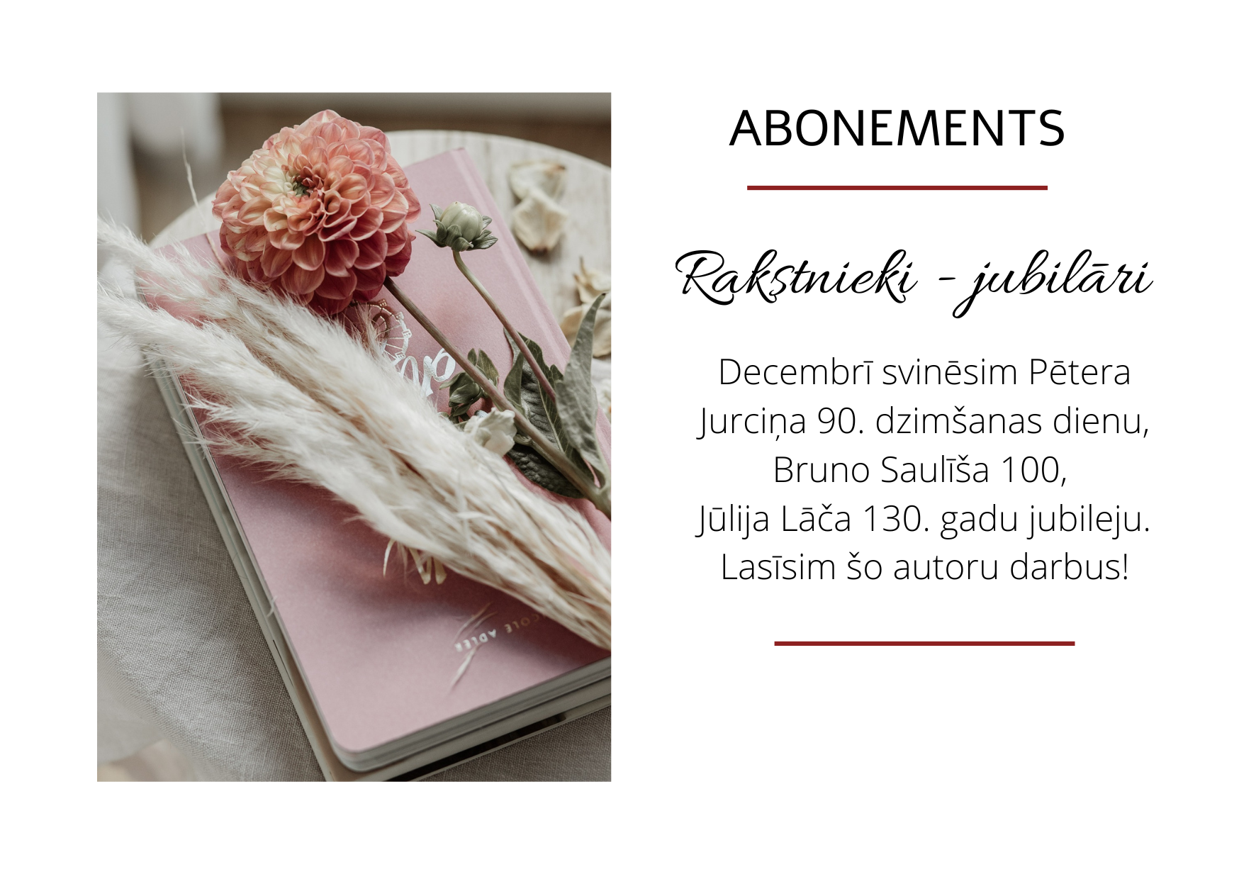 Decembrī atzīmēsim rakstnieku jubilejas, smelsimies grāmatu lappusēs idejas Ziemassvētku gaidīšanai un svinēšanai.