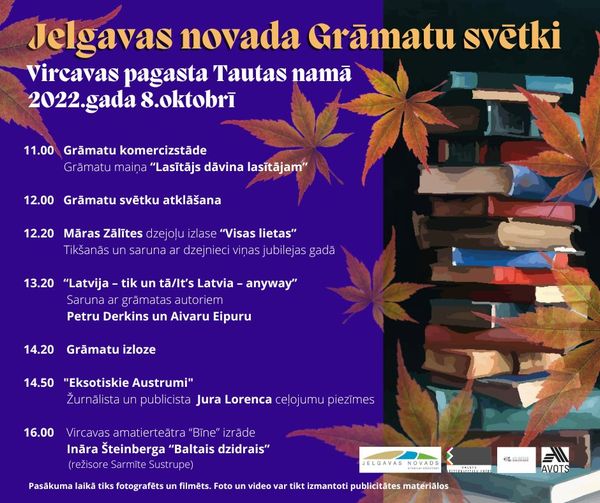 Vircavas Tautas namā 8. oktobrī notiks ikgadējie Grāmatu svētki, kuros grāmatu cienītāji varēs satikt rakstniekus un grāmatu autorus – Māru Zālīti, Aivaru Eipuru, Petru Derkinsu un Juri Lorencu. Pasākumā notiks arī grāmatu izloze un priecēs amatiermākslas kolektīvu uzstāšanās.