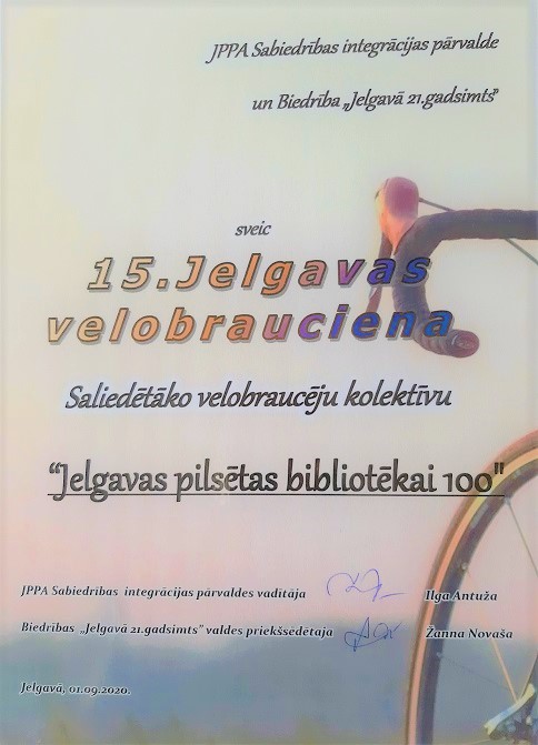 Jelgavas pilsētas bibliotēka iegūst balvu velobraucienā "Manai pilsētai 755"