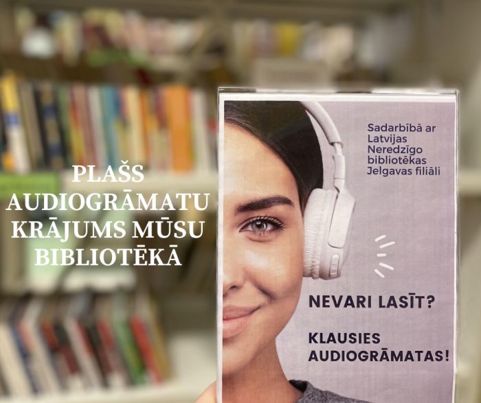 Savukārt sadarbībā ar Latvijas Neredzīgo bibliotēkas Jelgavas filiāli piedāvājam ieskaņoto latviešu un ārzemju daiļliteratūru, kuru periodiski mainām. Šobrīd uz vietas pieejami tādu iecienītu grāmatu lasījumi no latviešu autoriem kā L. Blauas “Uldis Dumpis. Zemgalietis”, A. Auziņa “Vendeta letiņu gaumē”, A. Akmentiņa “Skolotāji” un ārzemju literatūras darbi kā E. Maknīla “Leļļu darbnīca”, Dž. Stouna “Klusā sezona”, K. Vaita “Ūdens atmiņa”, kuri sagādās patīkamus brīžus ikvienam klausītājam.