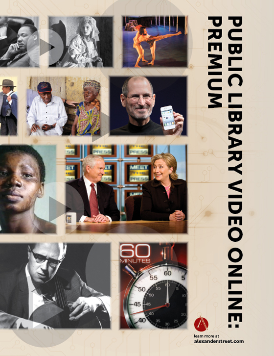 Līdz 16.maijam Jelgavas pilsētas bibliotēkā un filiālēs tiek nodrošināts "ProQuest Public Library Video Online Premium" resursu bezmaksas izmēģinājumu, kas piedāvā piekļuvi vairāk nekā 40000 straumēšanas video materiāliem. Tas ir lielākais šāda veida resursu piedāvājums publiskajām bibliotēkām ar daudzveidīgu tematisko aptvērumu: zinātne, antropoloģija, bizness un ekonomika, vēsture, tiesību zinātnes, izglītība, karjera un darbs, medicīna, ceļojumi, psiholoģija, socioloģija, teātris, mūzika, dejas, ģimene, kā arī starpnozaru tēmas.Vairāk informācijas: http://search.alexanderstreet.com/
