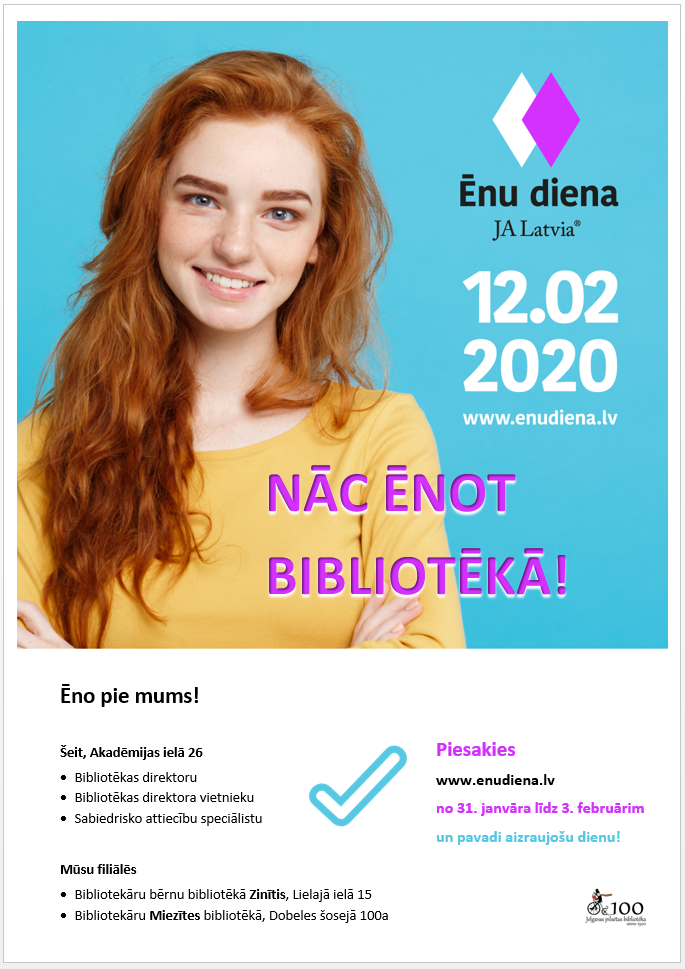 No 31. janvāra līdz 3. februārim skolēni vēl var pagūt pieteikties ikgadējai Junior Achievement Latvia karjeras izglītības programmai Ēnu diena. Savas ēnas gaida arī Jelgavas pilsētas bibliotēka un tās filiāles!Šogad Ēnu diena norisināsies 12. februārī. Ēnu devēju un ēnotāju sastapšanās notiek portālā www.enudiena.lv. Skolēnu izvēlei ir pieejamas tūkstošiem dažādu vakanču visā Latvijā - un vēl ir arī pieejamas dažas brīvas vietas pie mums, Jelgavas pilsētas bibliotēkā un mūsu filiālēs – Miezītē un Zinītī, tāpēc pasteidzies!