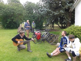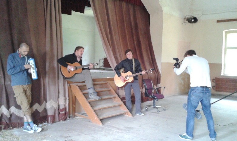 25.jūnijā Ūziņu bibliotēkā viesojās lieliskie "Velomūzika 2014" puiši - mūziķi Kārlis Kazāks, Māris Bīmanis, Juris Kroičs, Jānis Strapcāns un aktieris un radio SWH dīdžejs Arturs Krūzkops. Velomūzika ir muzikāls veloceļojums, kas ved pa skaistākajām Latvijas vietām, uzburot jaušus un pavisam nejaušus akustiskus koncertus visdažādākajās vietās un situācijās. Tāds brīnišķīgs un nejaušs koncerts izkanēja arī simtgadīgajā Ūziņu Biedrību namā, kurš atrodas līdzās bibliotēkai. Lai arī iepriekšējā dienā tika krietni saposts Ūziņu parks, puiši vēlējās spēlēt tieši vecajā Biedrību namā. Skanēja lieliski, un tas bija ārkārtīgi saviļņojošs brīdis, jo nams jau gadiem stāv tukšs. Pēc jaukā koncerta mūziķi paciemojās bibliotēkā, iepazinās ar Ūziņu bagāto vēsturi un devās tālāk uz Vilces pusi.