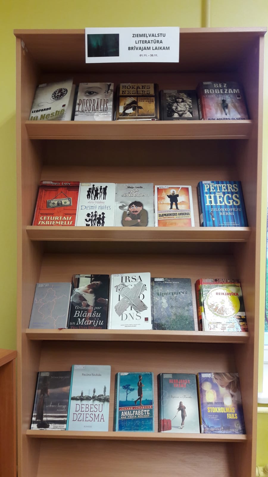 Jelgavas pilsētas bibliotēkas lasītavā līdz 30. novembrim ir skatāma Ziemeļvalstu literatūras nedēļai veltīta grāmatu izstāde "Ziemeļvalstu autoru darbi mūsu bibliotēkas Novadpētniecības un seno izdevumu krājumā". Izstādē ir apskatāmas latviešu valodā tulkotās populāru Ziemeļvalstu autoru grāmatas, kas izdotas 20. gadsimta pirmajā pusē.