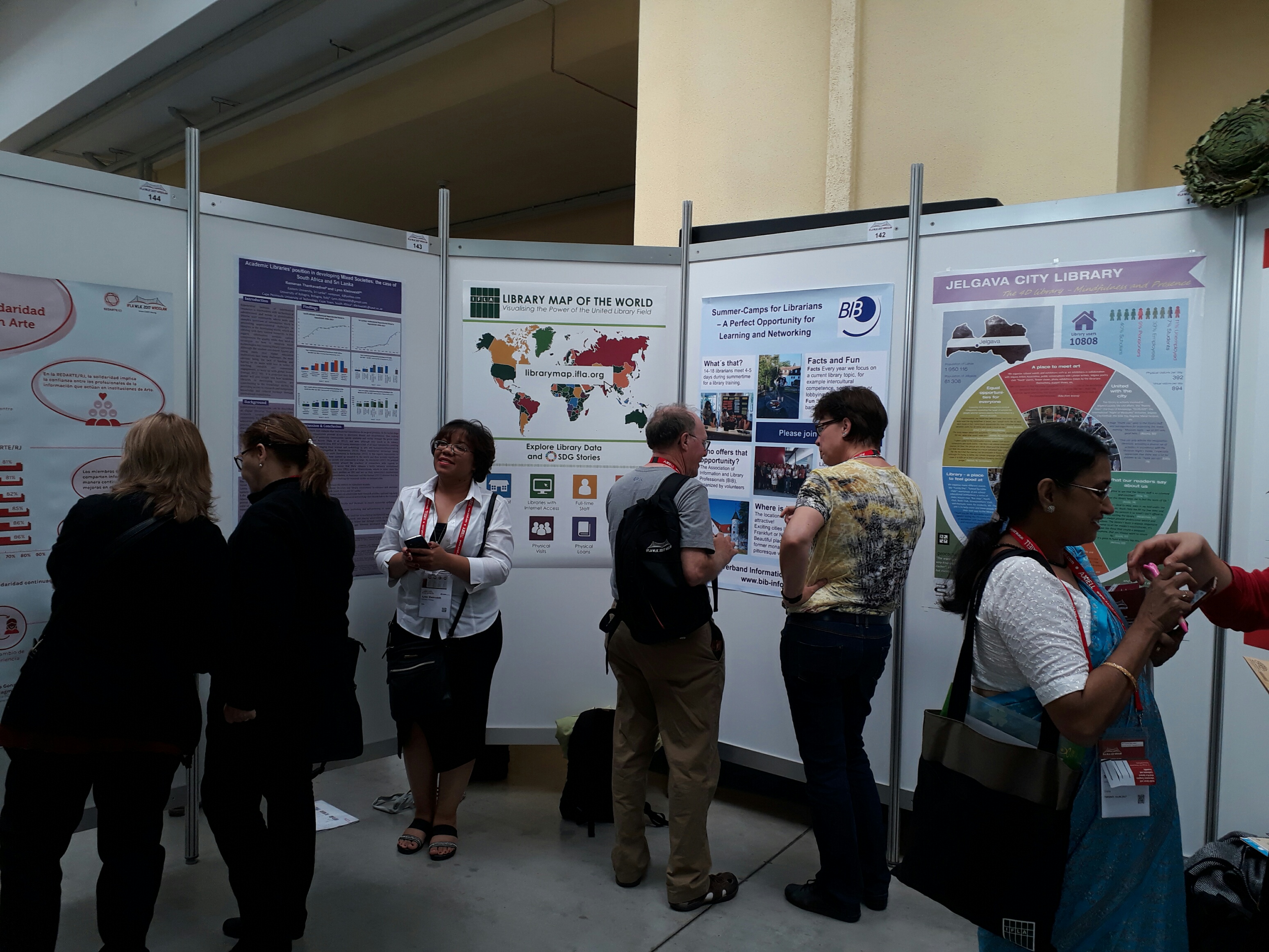 No 19. līdz 25. augustam Polijas pilsētā Vroclavā norisinājās Starptautiskās bibliotēku asociāciju un institūciju federācijas (IFLA) kongress – viens no gada centrālajiem notikumiem bibliotēku pasaulē. Polijā, Vroclavas Simtgades zālē (ēka iekļauta UNESCO Pasaules mantojuma sarakstā), tikās 3100 bibliotekāru un nozares pārstāvju no 122 pasaules valstīm, uzstājās vairāk nekā 500 runātāju 247 dažādas sesijās, plenārsēdēs un konferencēs. Kongresā piedalījās arī Jelgavas pilsētas bibliotēkas vadītāja Lāsma Zariņa, Fonda izmantošanas un organizācijas nodaļas vecākā bibliotekāre Viktorija Agafonova un Informācijas nodaļas vadītāja Baiba Īvāne-Kronberga. Jau agrā pavasarī Lāsma Zariņa kopā ar Viktoriju Agafonovu izstrādāja pieteikumu IFLA kongresa plakātu sesijai un veiksmīgi izturēja atlasi, lai Polijā ar stenda referātu prezentētu mūsu bibliotēku līdzās 187 citām bibliotēku institūcijām no visas pasaules. Plakāti bija apskatāmi kongresa izstāžu telpās nedēļu, kā arī divas dienas stāstījām un diskutējām par mūsu afišā paustajām idejām ar ikvienu interesentu. Savukārt Baiba Īvāne-Kronberga bija pieteikusies IFLA izsludinātajam stipendiju konkursam un izturēju atlasi, kurā 20 bibliotekāriem no visas pasaules tika dota iespēja apmeklēt kongresu bez dalības maksas.