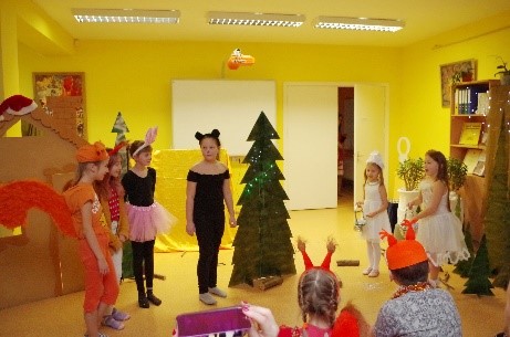2020.gada pirmajā pusē mēs sagatavojām izrādi arī uz Lieldienām un, par godu pirmajam septembrim, mēs iestudējām izrādi “Garšīgie burtiņi”, ar kuru uzstājāmies Jelgavas pilsētas bibliotēkas filiālē Bērnu un jauniešu bibliotēkā “Zinītis”.
