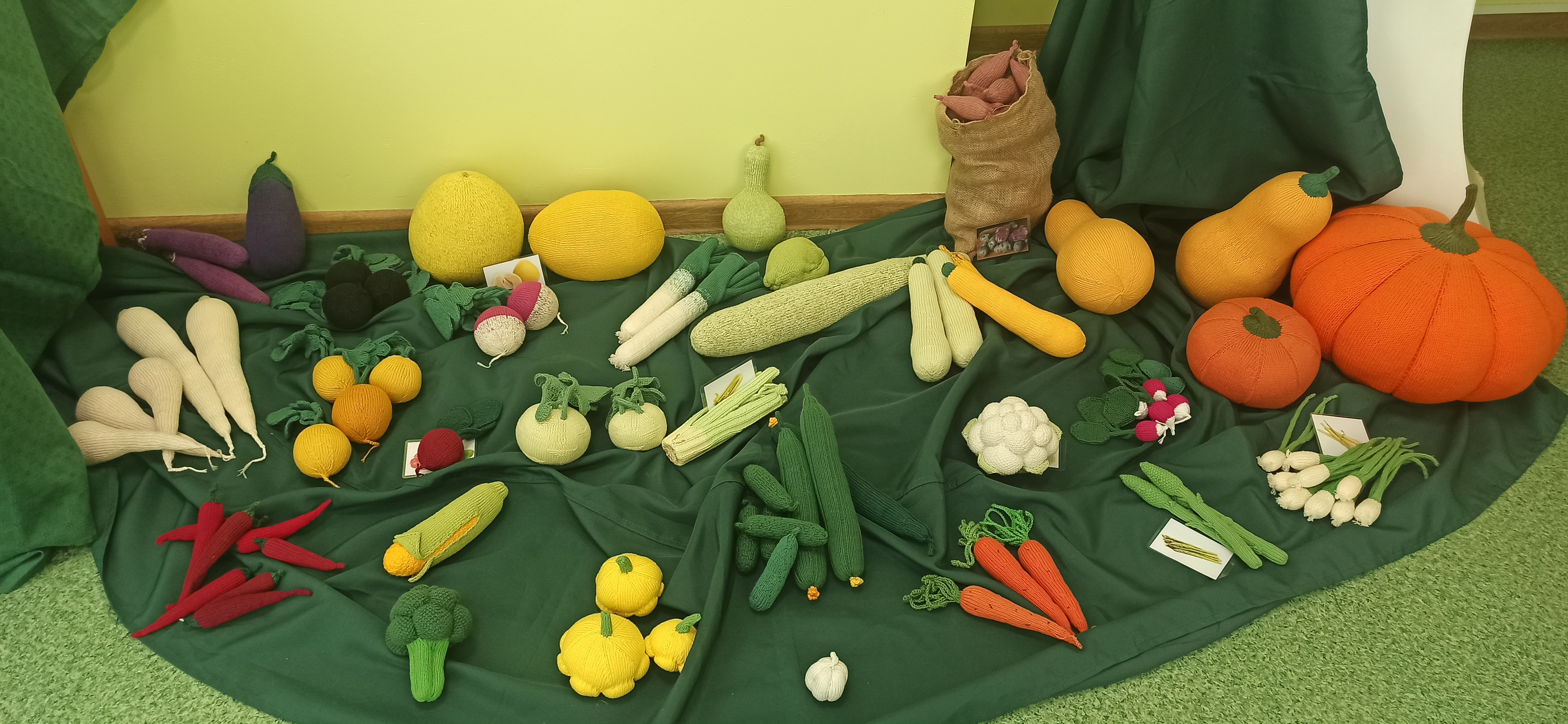 Pārlielupes bibliotēkā Ilzes Hakas adīto dārzeņu un sēņu izstāde