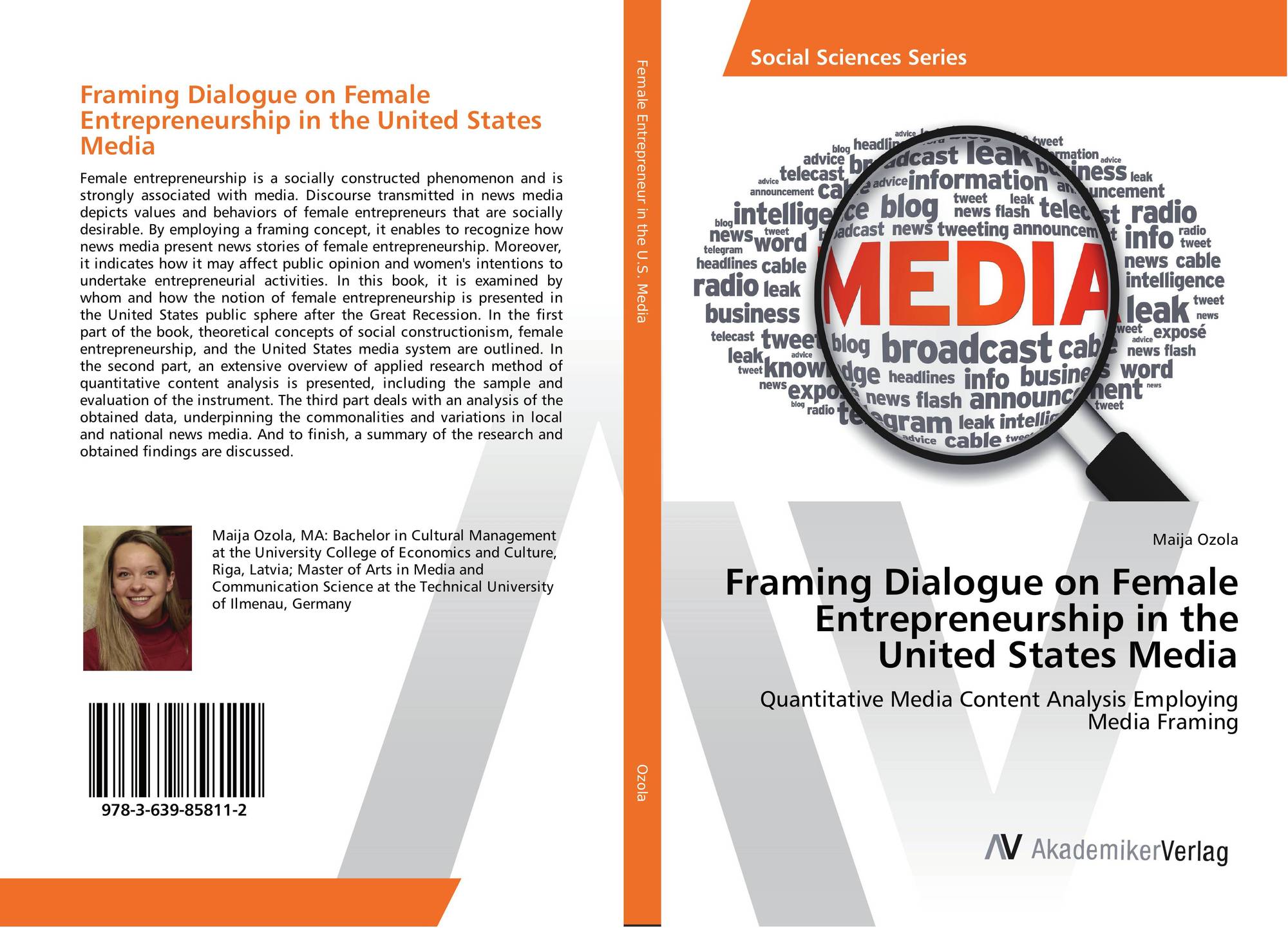 Pētījuma uzmanības lokā ir sieviešu uzņēmēju atspoguļojums Amerikas Savienoto Valstu medijos un tas, kā mediju ziņas ietekmē sabiedrības viedokli par konkrēto jautājumu. Grāmatas pirmajā daļā ir izklāstīti teorētiskie koncepti par sociālo konstuktīvismu, sieviešu uzņēmējdabību un ASV mediju sistēmu. Grāmatas otrajā daļā autore iepazīstina ar pētījuma metodoloģiju un instrumentāriju, un trešajā, noslēguma daļā, apraksta iegūtos rezultātus, analizē tos un izvirza secinājumus.