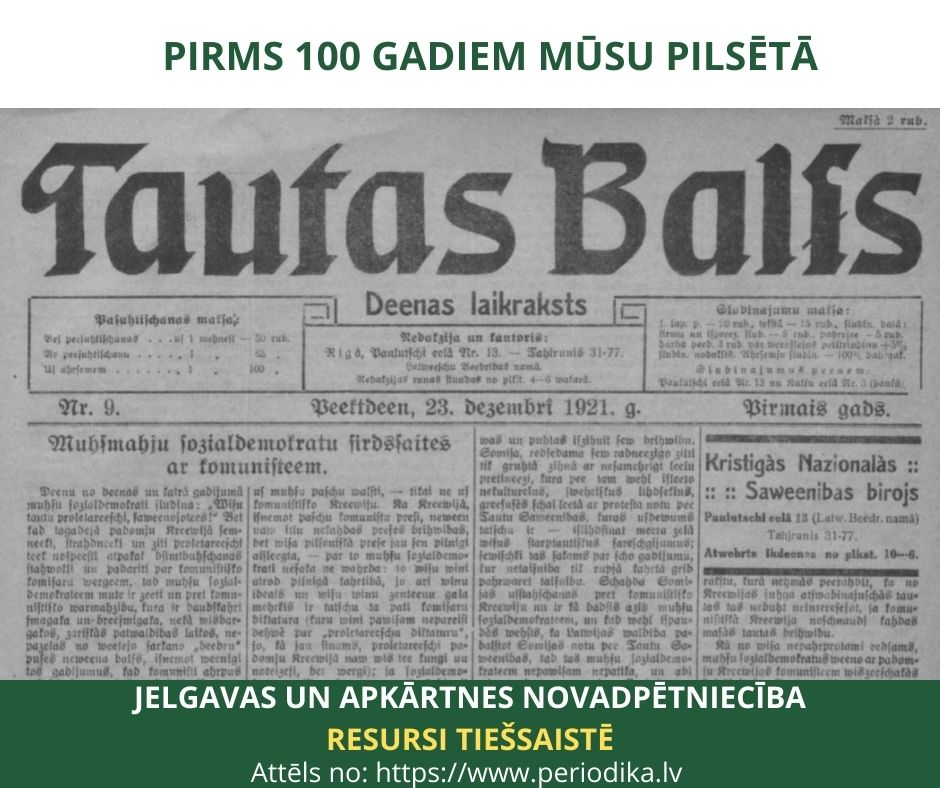 “Latvijas Vēstnesis” 1921. gada decembrī par Jelgavu ziņo.