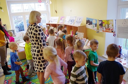 Ir pagājis jau vesels mēnesis, kopš Muminu ģimene no Somijas viesojas pie mums, Jelgavas pilsētas bibliotēkā. Bērnu interese un atsaucība bijusi patiešām ļoti liela – pie mums jau paviesojušies ap 300 bērnu un pedagogu no 5 bērnudārziem un 3 skolām – pavisam 14 grupas!Mēs kopā izstaigājām un apskatījām bibliotēku, lasījām pasaku par trollīti Muminu, gājām rotaļās, dziedājām, izkrāsojām Muminu ielejas iemītniekus un aplūkojām Muminiem veltīto izstādi, kas omulīgi iekārtojusies bērnu stūrītī 1. stāvā.